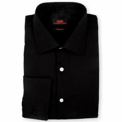 Steven Land Men's Trim-Fit French Cuff Tonal Twill Print Cotton Dress Shirt –...